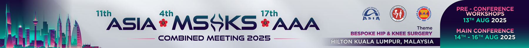 Dear Esteemed Colleagues and Friends, 2025 will be an exciting year for us, as we host our annual meeting together with the Arthroplasty Society in Asia (ASIA) and the ASEAN Arthroplasty Association (AAA) right in the heart of Kuala Lumpur. This collaboration promises to gather the great minds, eminent leaders and innovators in the field of hip and knee surgery.